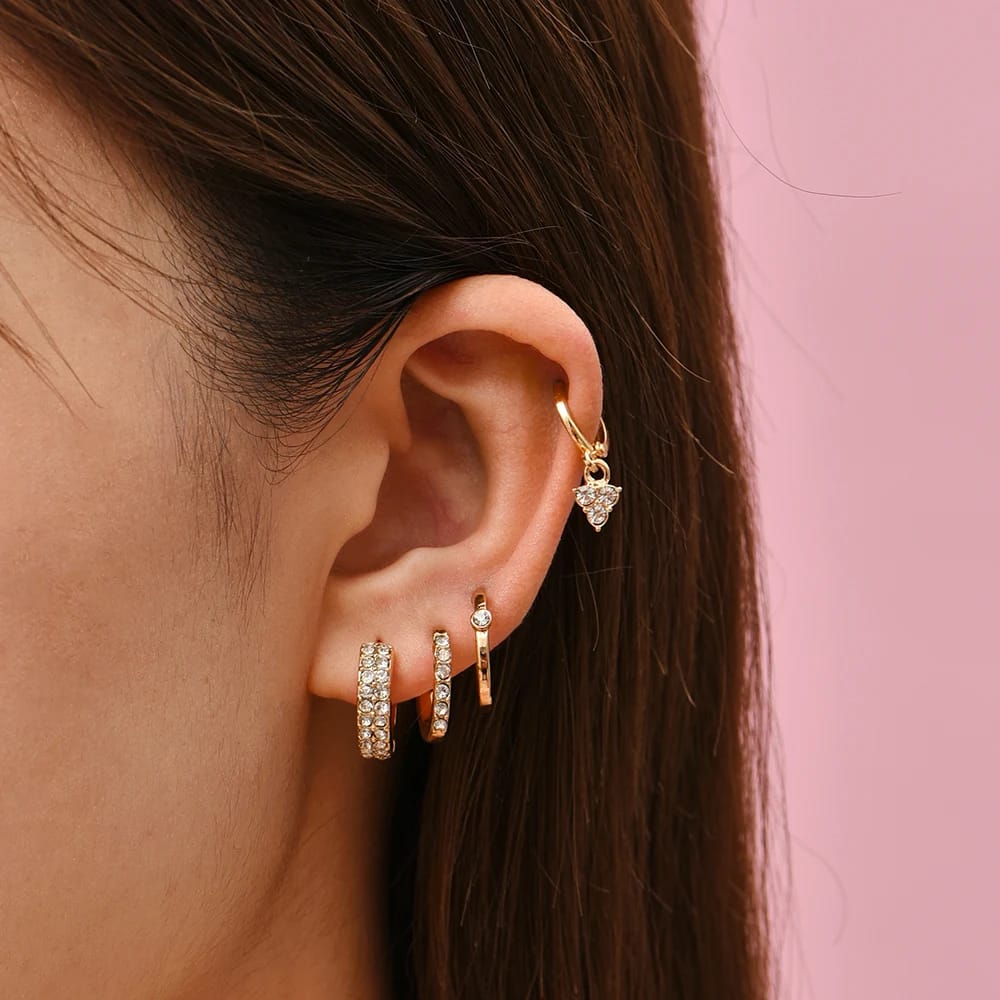 تشمل أقراط ْ لامعة بيضاء، وأخرى مزينة بحبيبات صغيرة، بالإضافة اقراط مرصعة بكريستالات ملونة تعطيك لمسة جريئة وعصرية.