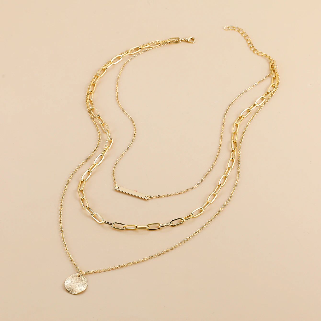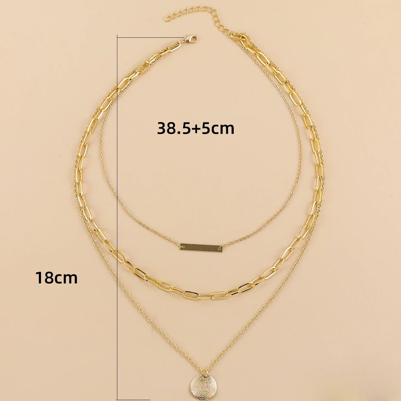 قلادتنا ثلاثية الطبقات تجمع بين البساطة والفخامة في تصميم واحد يلفت النظر. فيها ثلاث سلاسل بأطوال مختلفة: وحدة ناعمة بنقشة مستطيلة، والثانية بحلقات كبيرة أنيقة، والثالثة بقلادة دائرية تضيف لمسة مميزة على إطلالتك. مصنوعة من خامة عالية الجودة ومطلية بلون ذهبي أو فضي أو وردي، تعطيك لمعة راقية وتناسب جميع المناسبات، من اليومية للكشخة.