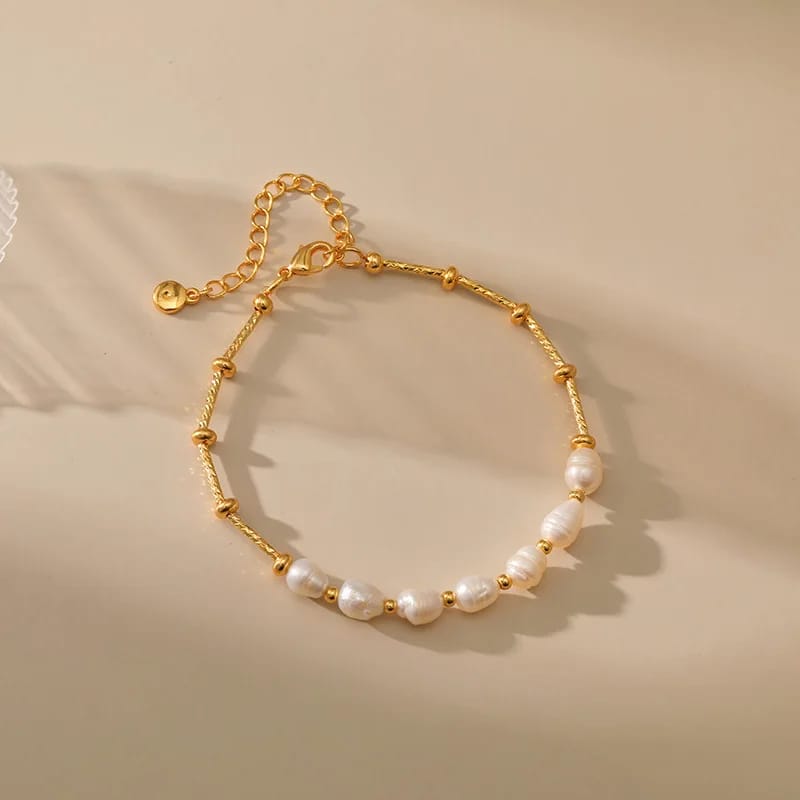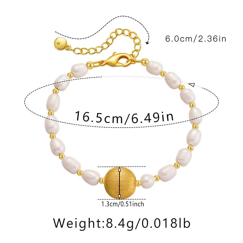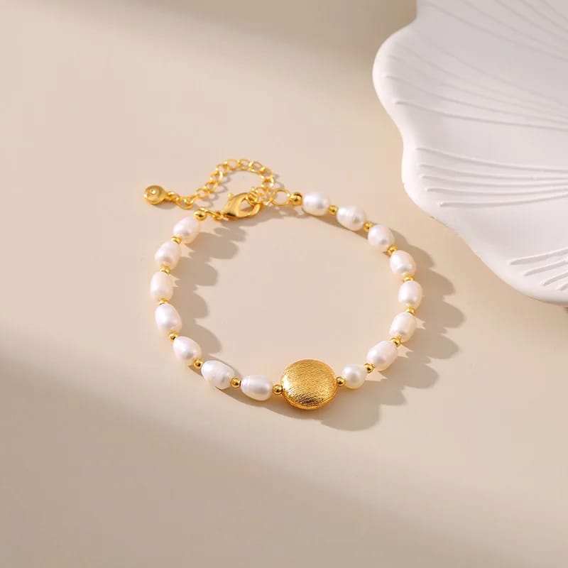 مصنوعة من لؤلؤ مياه عذبة ومزينة بلمسات ذهبية أنيقة تعطيك طابع فخم وناعم بنفس الوقت.