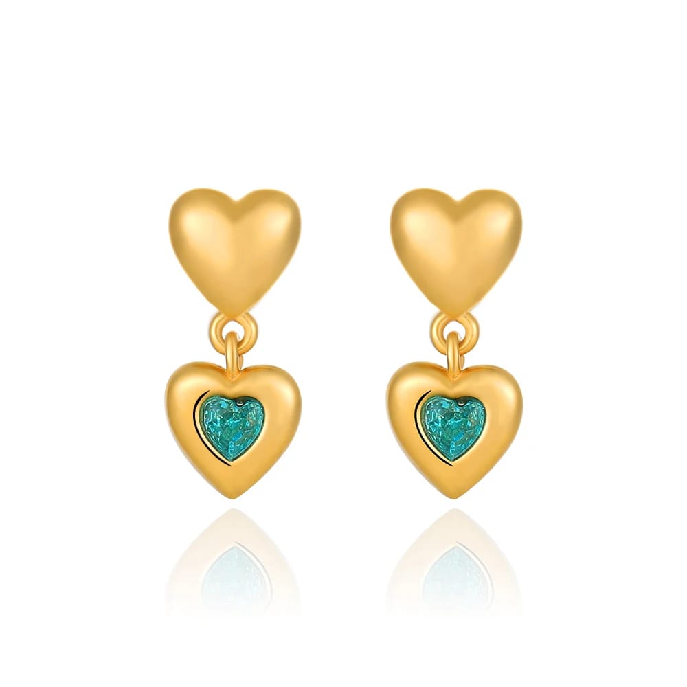 القلادة تجي بحجر مربع براّق، واقراط بشكل قلوب ناعمة، والخاتم مفتوح بتصميم أنثوي بسيط يقدر يتعدل حسب المقاس.
