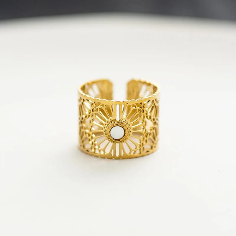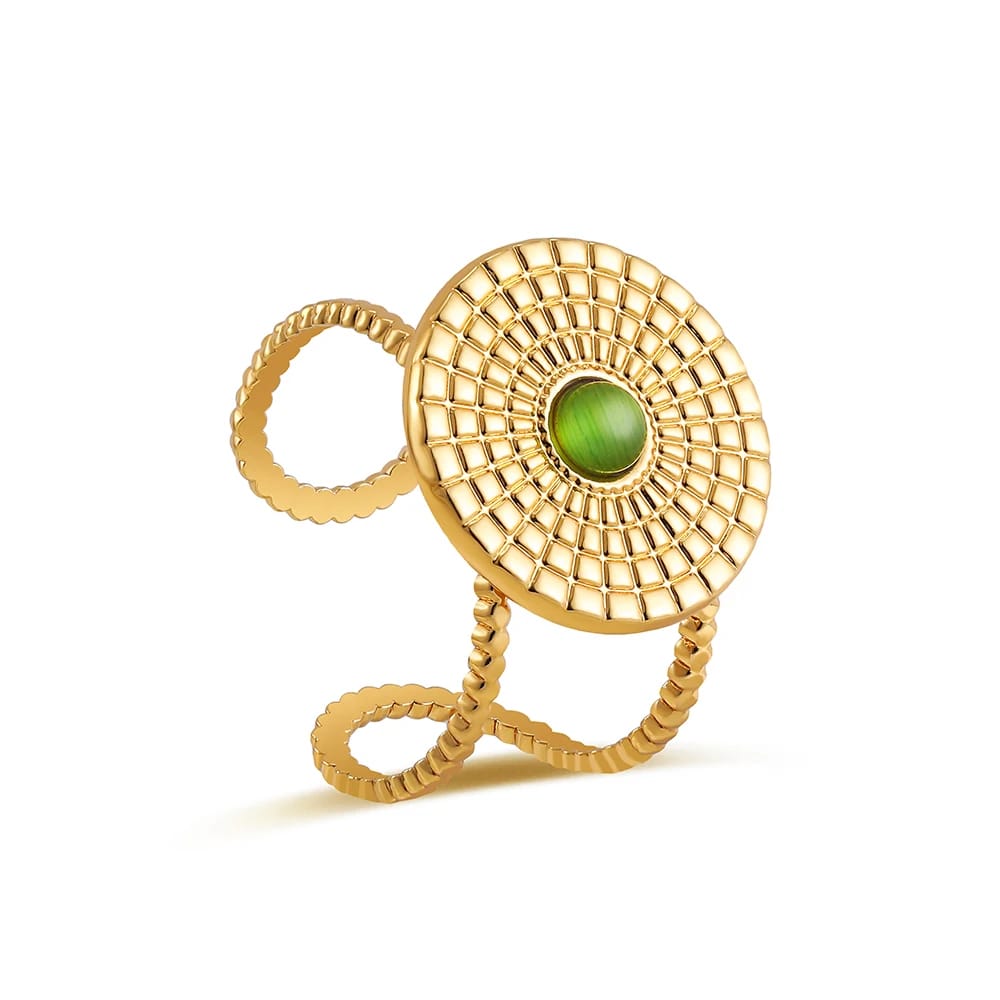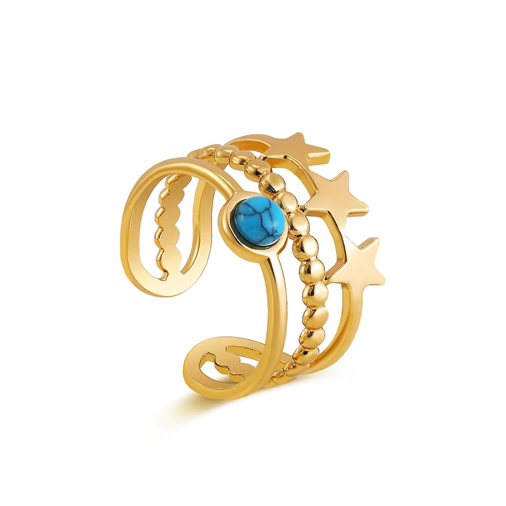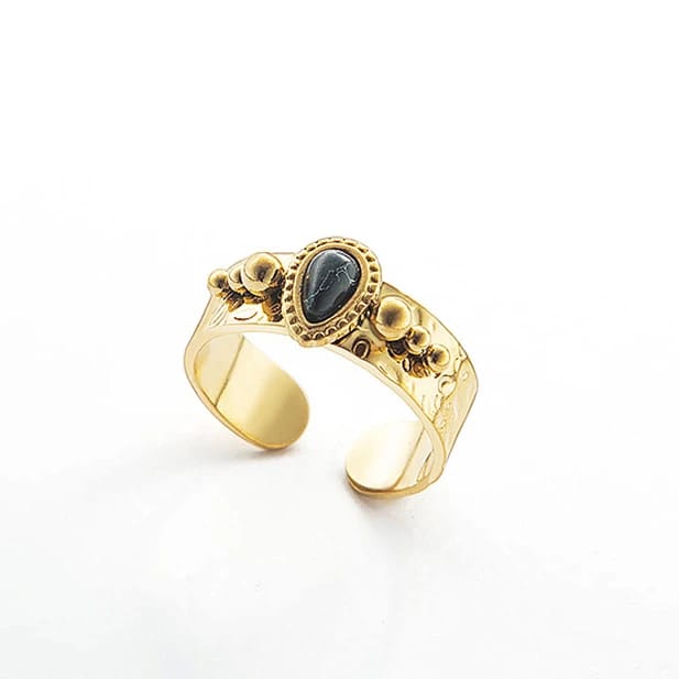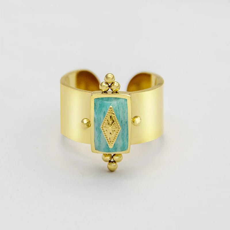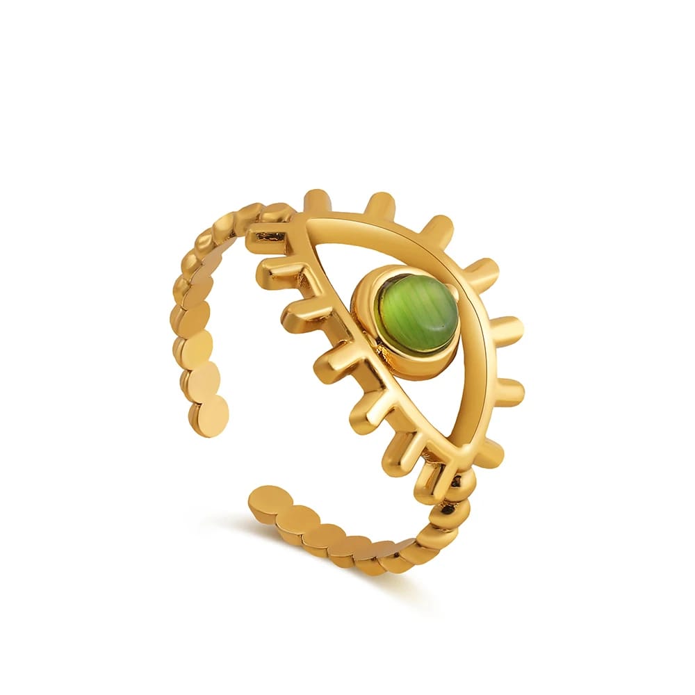 خواتم "وهـج" بتصميم فريد يمزج بين الفخامة والبساطة، مصنوعة من فولاذ مقاوم للصدأ ومطلية بلون الذهبي بعناية لتمنحك لمعان يدوم. مزينة بحجارة طبيعية بألوان جذابة تعكس الذوق الرفيع واللمسة الفنية الراقية.