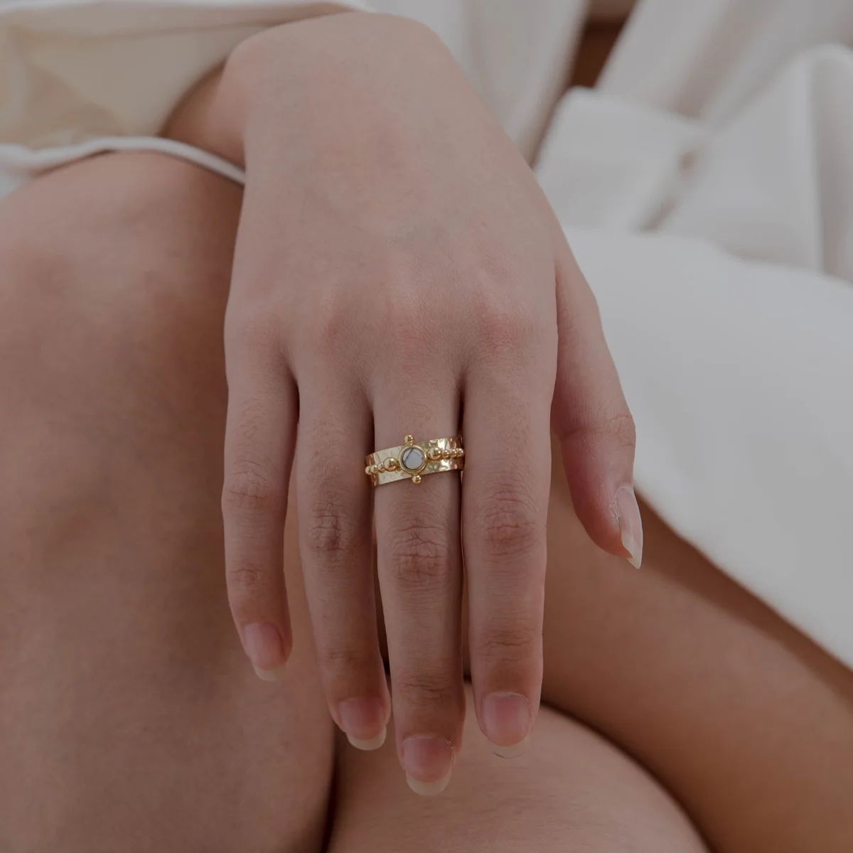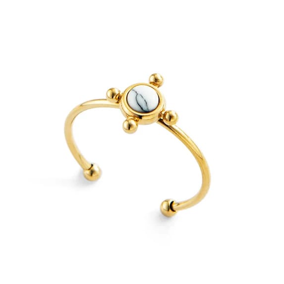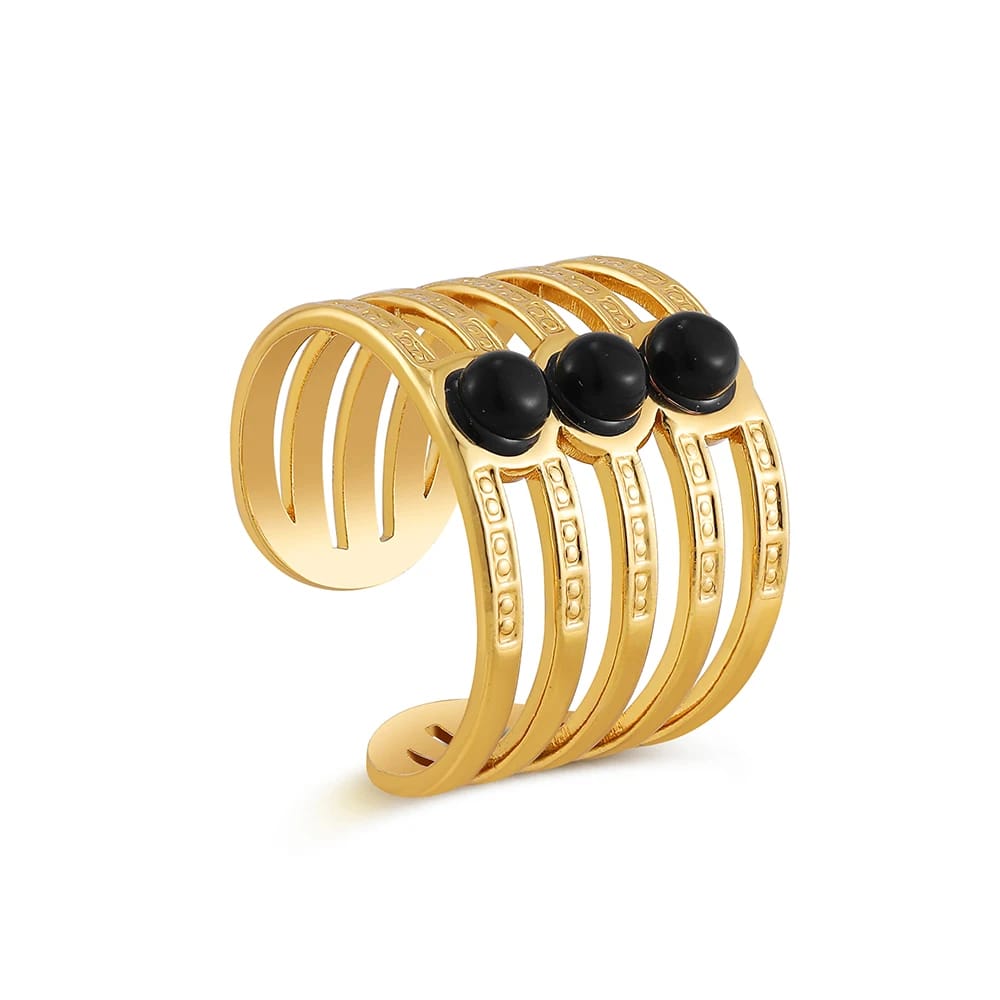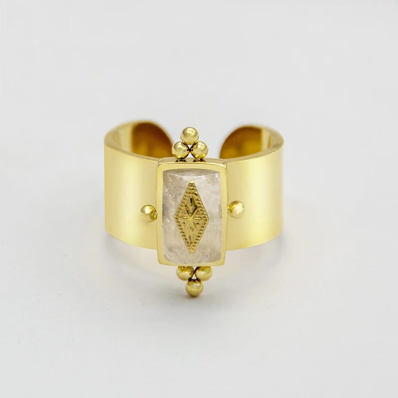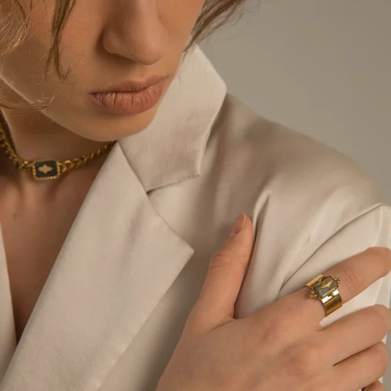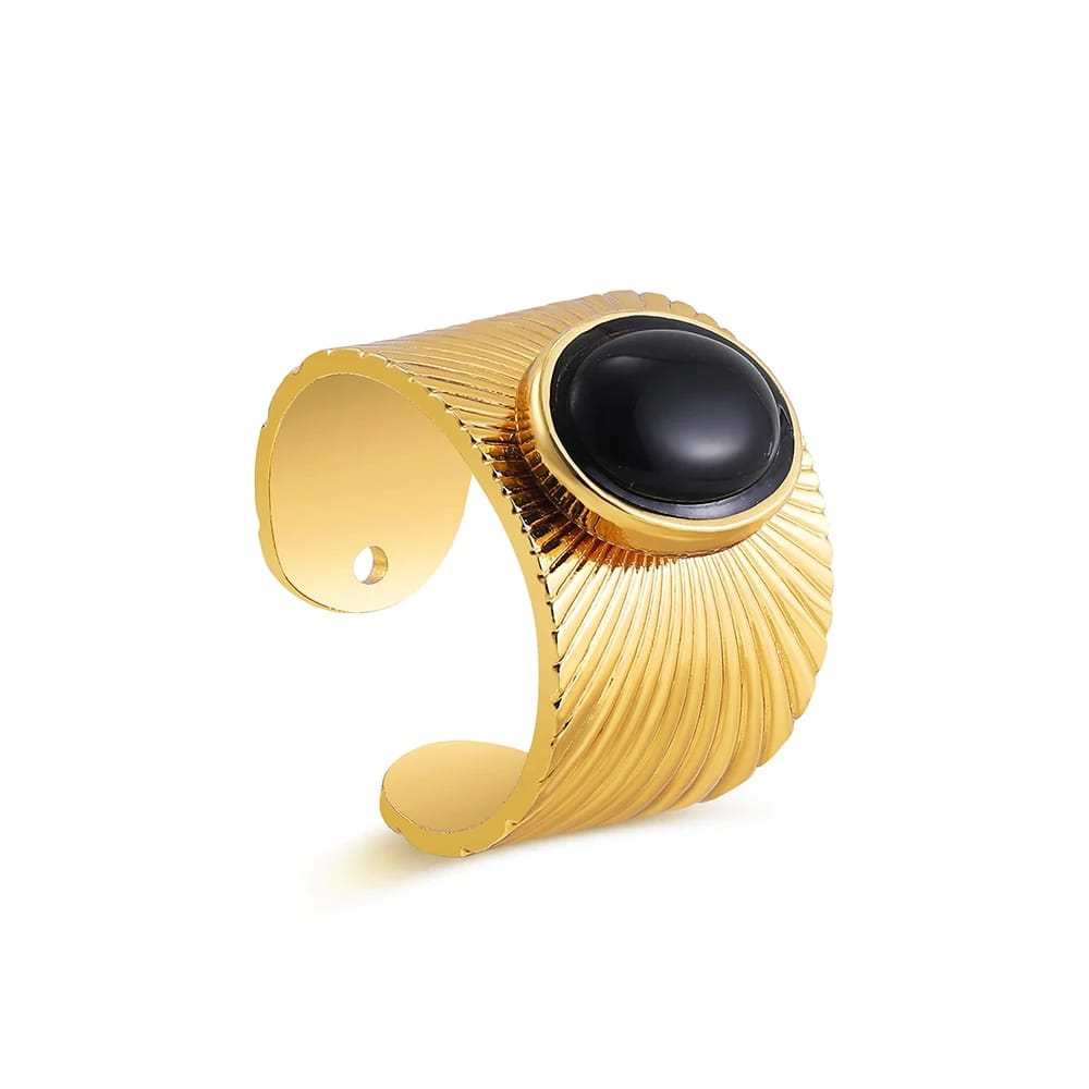 خواتم "وهـج" بتصميم فريد يمزج بين الفخامة والبساطة، مصنوعة من فولاذ مقاوم للصدأ ومطلية بلون الذهبي بعناية لتمنحك لمعان يدوم. مزينة بحجارة طبيعية بألوان جذابة تعكس الذوق الرفيع واللمسة الفنية الراقية.